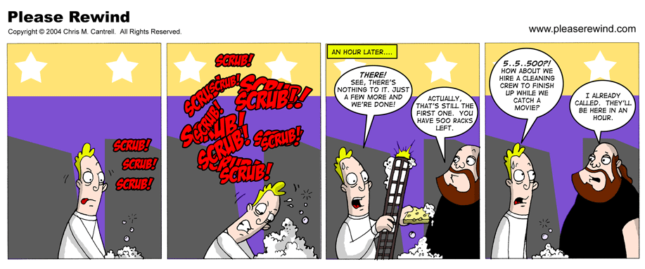 Hank and Tony give up cleaning the store for the day and head off to see a movie. At least, that’s the goal.