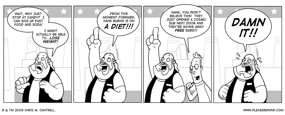 On the day that Hank declares himself to be on a diet, his favorite sub shop opens up next door sending him into a calorie crisis.